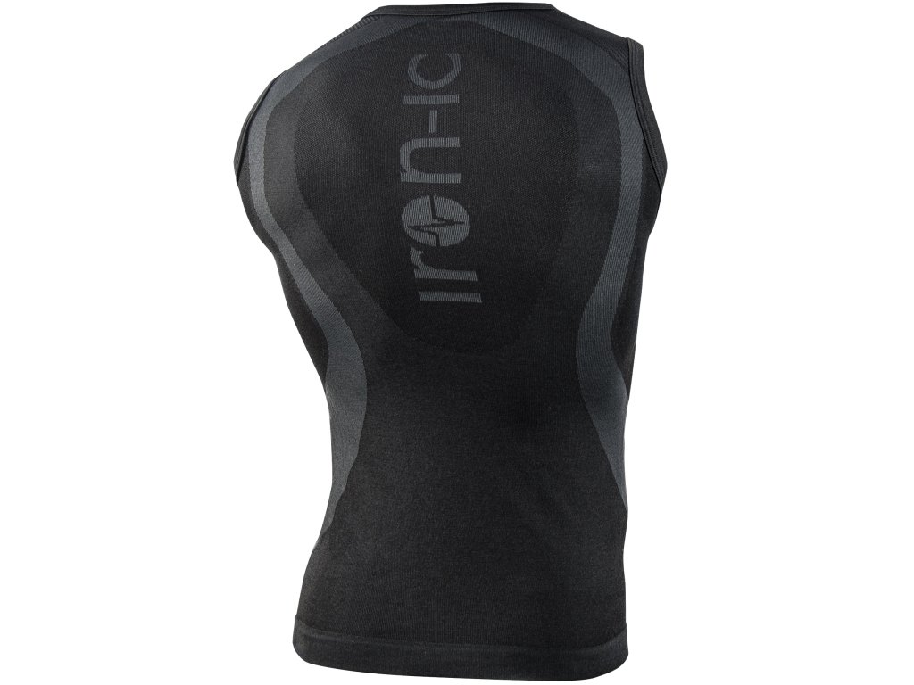 Funkční triko bez rukávu anatomického střihu. Diferencované zóny regulují pocit tepla a optimalizují odpařování potu.